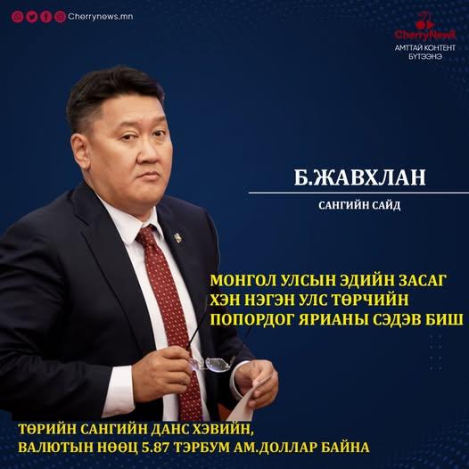 Сангийн сайд Б.Жавхлан Төрийн сангийн үйл ажиллагаа хэвийн хэмээлээ.Тэрээр мэдэгдэл хийхийнхээ өмнө хуваарийн дагуу төрийн бүх санхүүжилт хэвийн явж байгаа гэдгийг албан ёсоор хэлье гэлээ. Энэ жилийн хувьд төсвийн хөрөнгө оруулалтын гүйцэтгэл 50 гаруй хувьтай байна. Гуравдугаар улиралд олон жилийнхээ дунджаар энэ орчимд байдаг. Мөн Монголбанкнаас болон Үндэсний Статистикийн газраас сүүлийн үеийн тоонуудыг авлаа. Монголбанкны албан ёсны веб сайт дээр гуравдугаар улирлын буюу есдүгээр сарын 30-ны байдлаар Монгол Улсын валютын нөөц 5 тэрбум 874 сая төгрөг байна. Өөрөөр хэлбэл, 4-5 сарын импортын хэрэгцээг хангах хэмжээний үлдэгдэлтэй байна.
